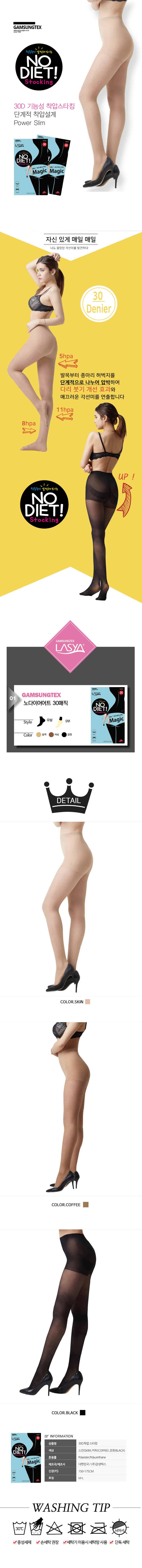 NO DIET 30D STOCKINGS (半透) 韓國人氣品牌 GAMSUNGTEX 岀品,此款半透絲襪,四季皆合適 深受韓國 OL上班族熱愛,質料柔韌兼備,更能預防靜脈曲張同時改善腿部線條 顏色 : 黑色 / 膚色 Size : M-L 150-175 cm |